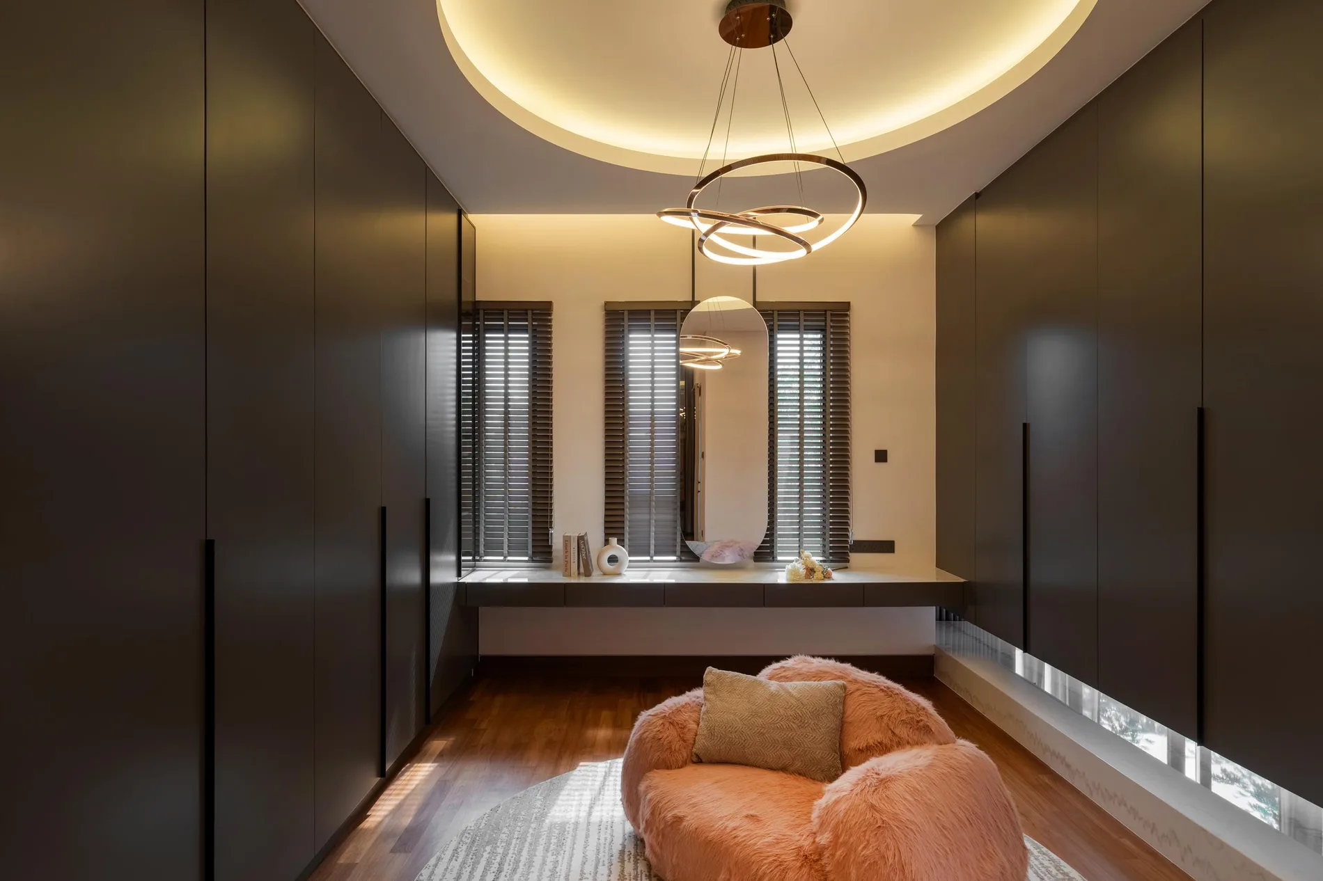 Upstairs, the 2nd bedroom offers a pool view, and the library was transformed into a study. The basement now includes a car porch and stylish shoe enclave, while the open design creates a more elegant feel. The master bedroom features a floating TV wall and a spa-like bathroom with an elegant and romantic skylight above the bathtub.